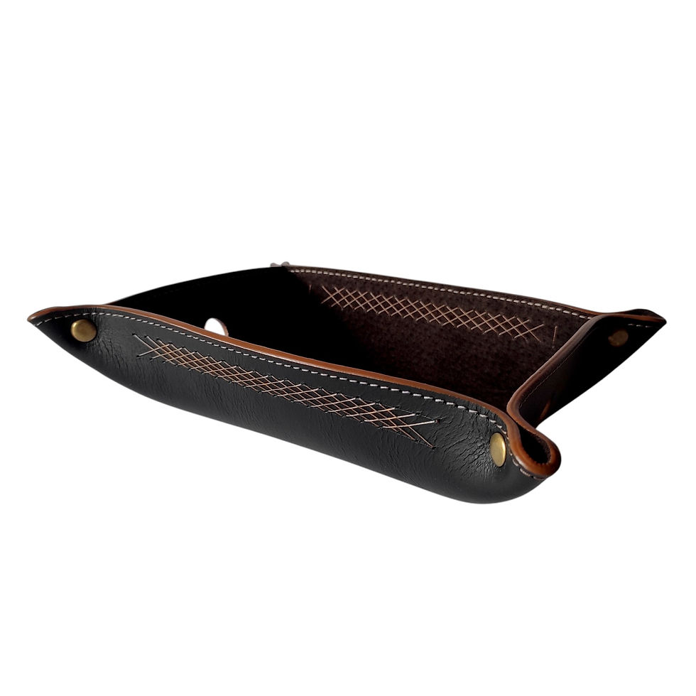 Descripción: Tarjetero (portadocumentos) en cuero, hecho 100% a mano. Cuenta con dos bolsillos en donde caben 3 tarjetas en cada bolsillo aproximadamente. Se caracteriza por el tejido hecho a mano en cuero que tiene en la tapa superior y por los acabados finos y delicados en todos sus bordes.